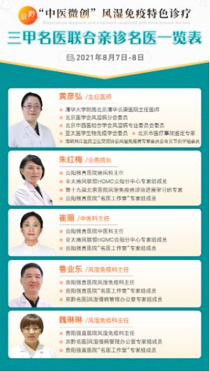 为了让风湿、类风湿、痛风患者能够得到最佳的个体化治疗方案,我院专家将与北京清华长庚医院风湿免疫科主任医师、海峡两岸医疗卫生交流协会风湿免疫病专家委员会骨关节炎学组委员黄彦弘教授开展学术交流,并于8月7日-8日开展京黔风湿免疫学专家联合会诊。